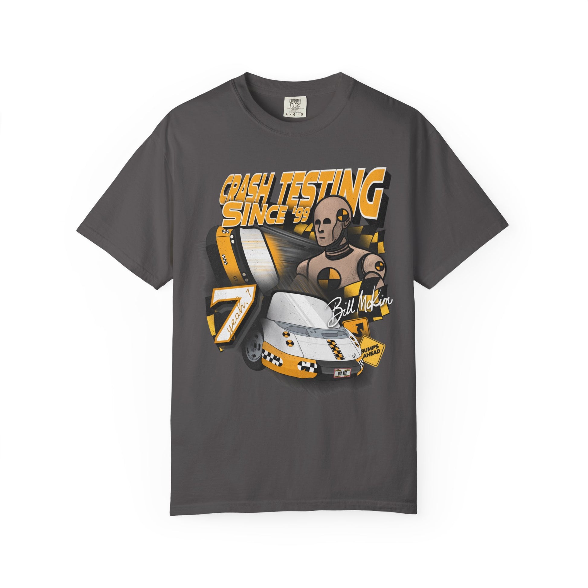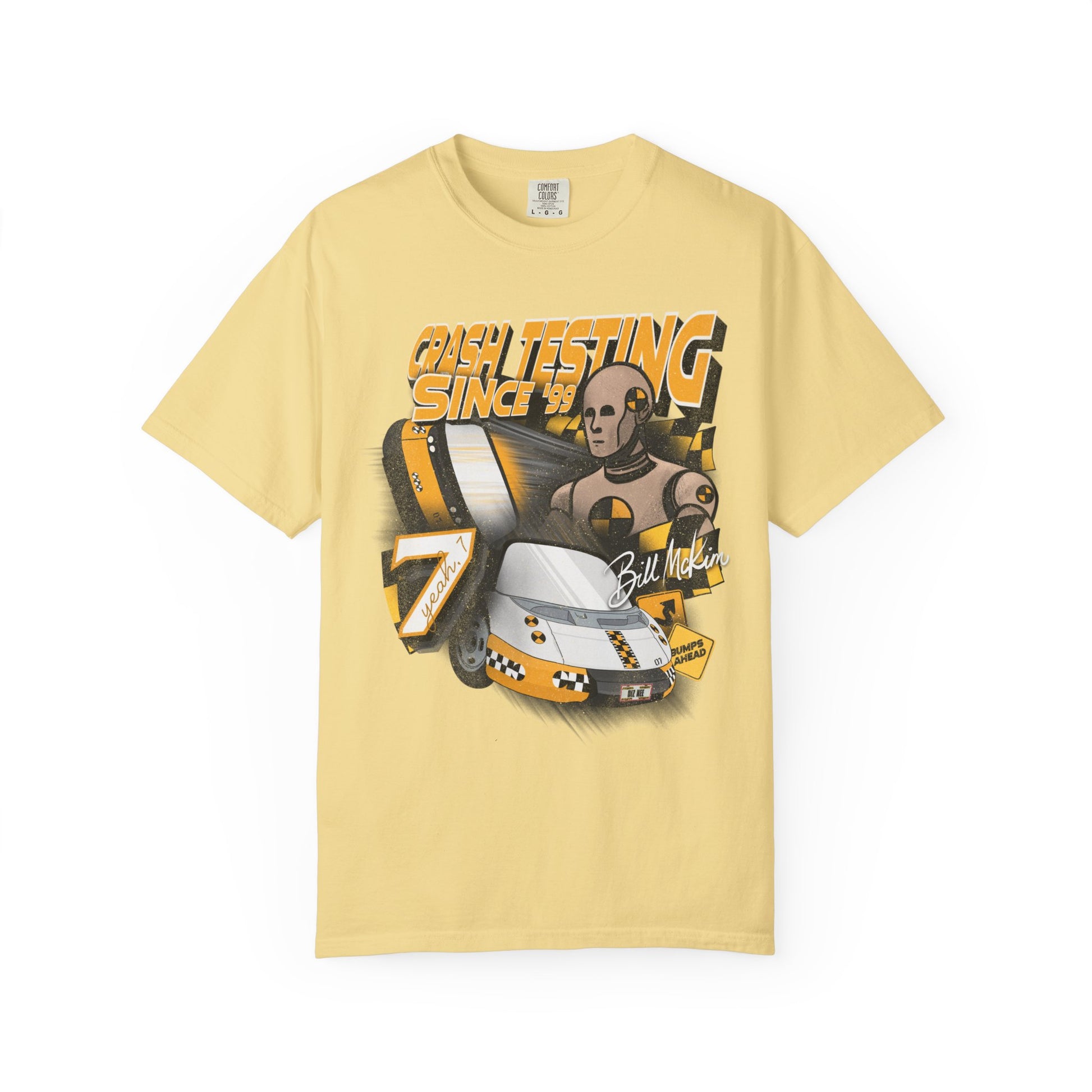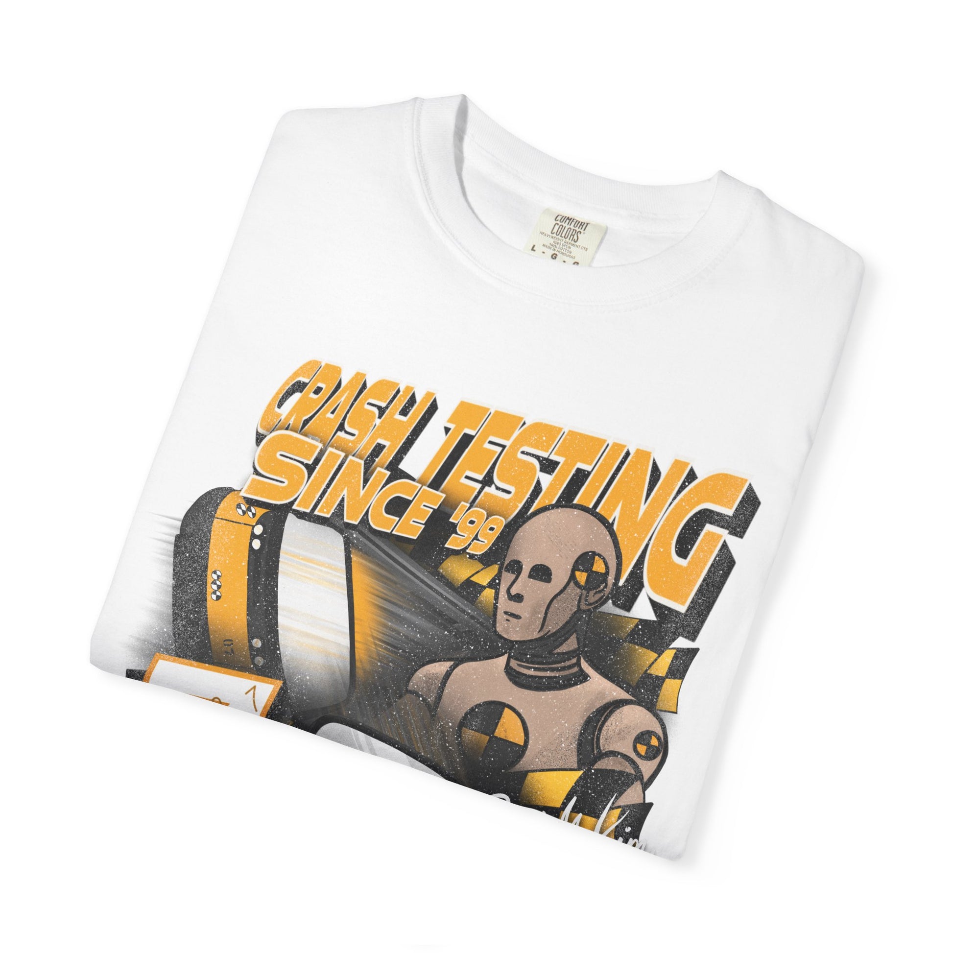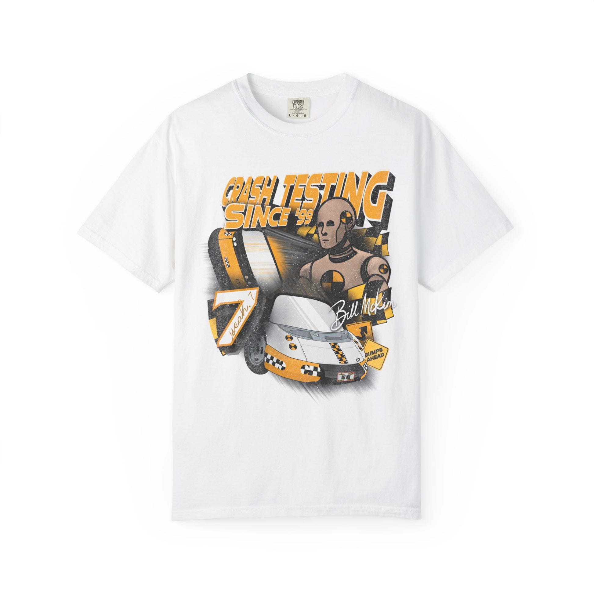 Take on the barrier test with your favorite crash test dummy! This tee is perfect for anyone looking to add a little nostalgia to their park day. DTG printed on comfort colors tee by our production partner. Ships out in 1-3 days.