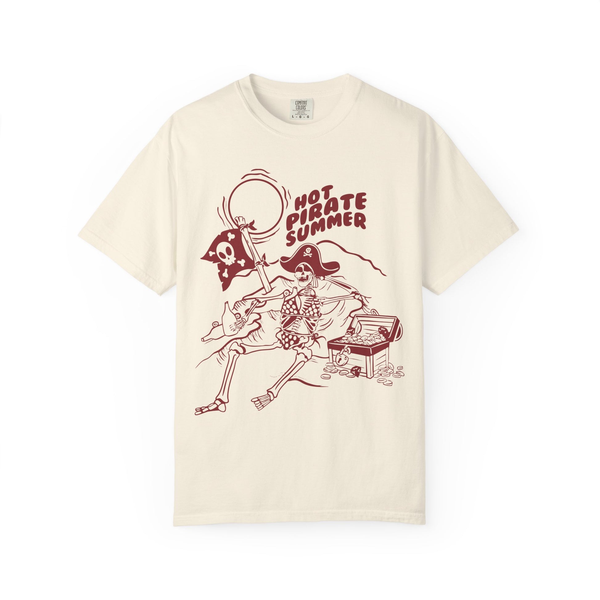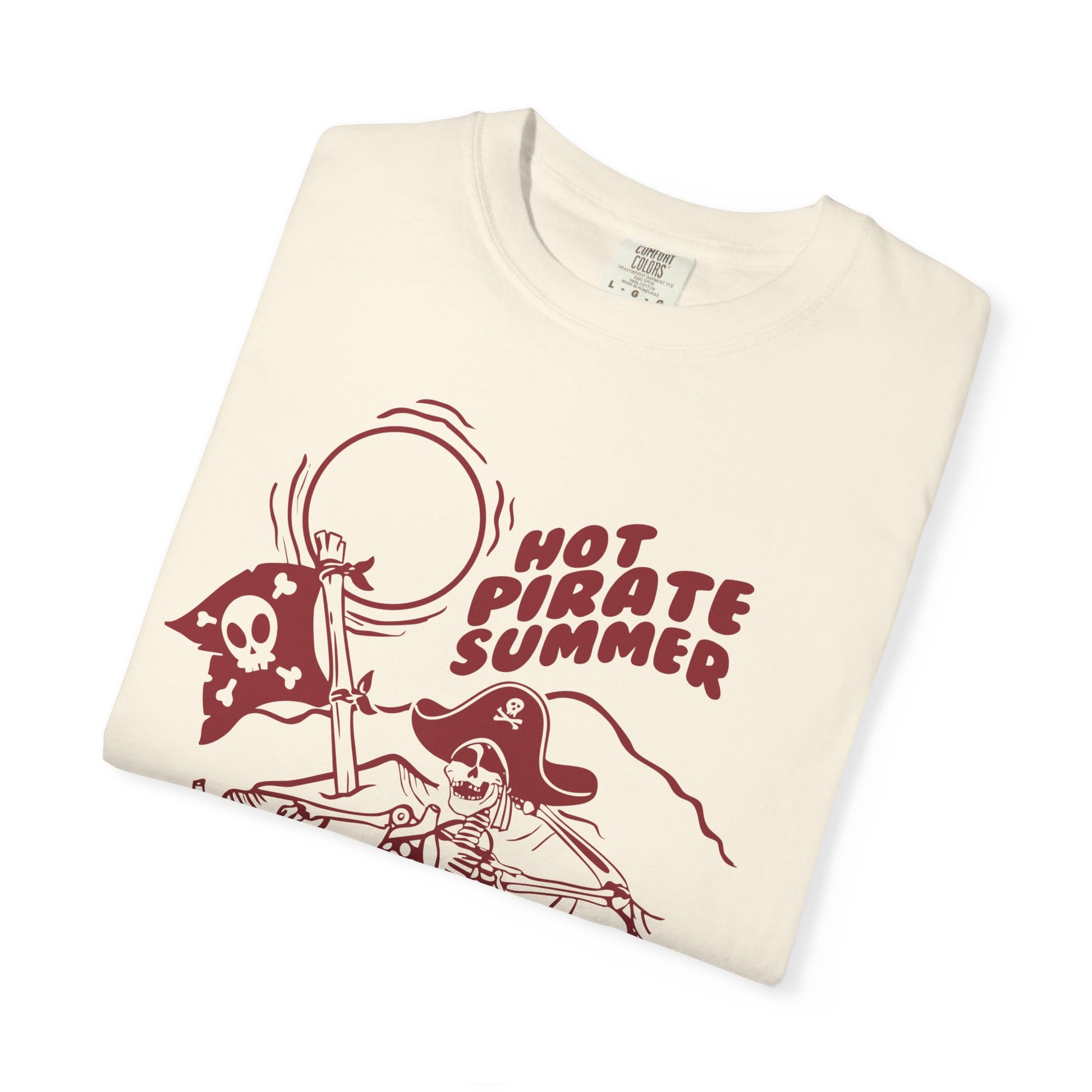 Get your Hot Pirate Summer started with this tee! Perfect for your hot pirate walks, booty calls, or yo-hoing around. DTG printed on a comfort colors tee. All shirts are made after ordering in our partner studio.