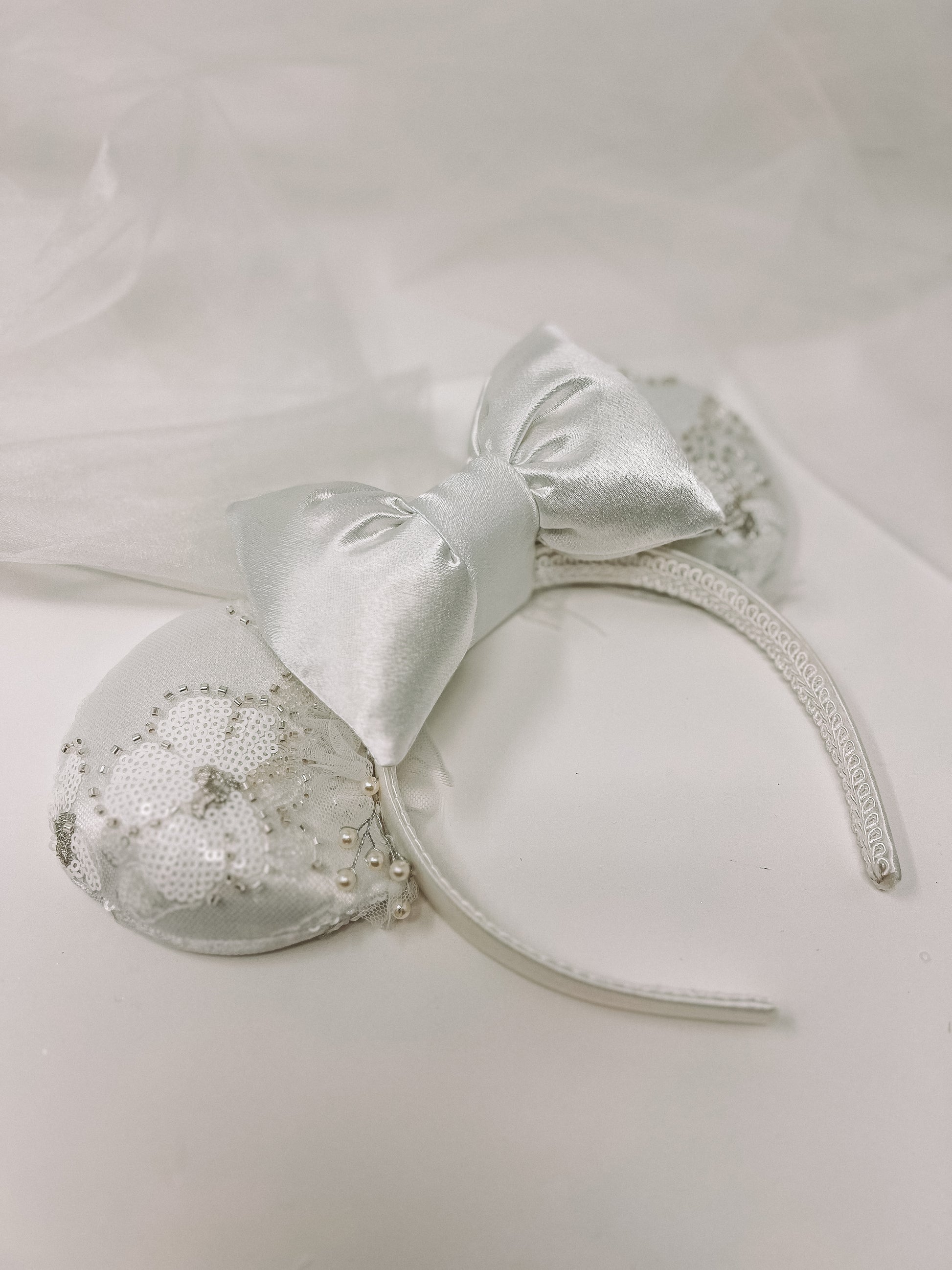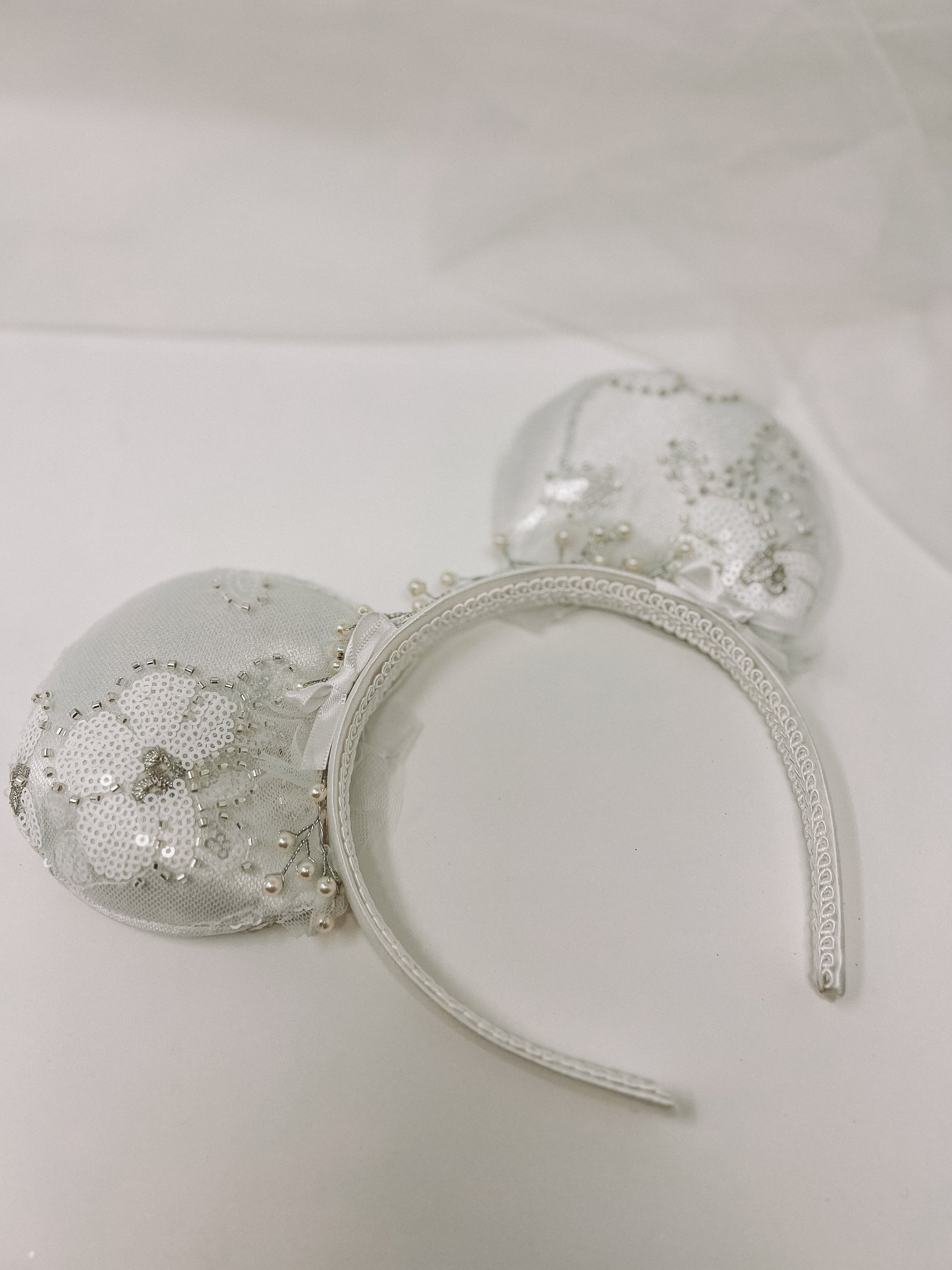 Unfortunately our beloved original fabric is no longer available. However, to continue making ears for all our snow-loving brides, we are switching fabrics to the swatch that is pictured in the photos. Please inquire further for more questions.